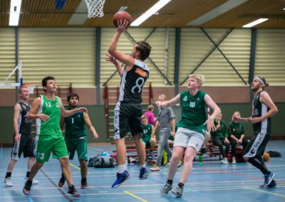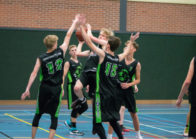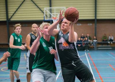 Tegelijk begon op veld 2 de wedstrijd van het Heren 1 team tegen De Groene Uilen uit Groningen. De studentenclub had een verzameling eerstejaars studenten/ basketballers naar Zuidlaren gestuurd die geen tegenstand kon bieden aan de enorme overmacht van de Epeios heren. Met een niet aflatende scoringsdrang walste Epeios over de tegenstander heen. De kwartstanden zeggen genoeg: 22-2, 47-6, 82-10 en eindstand 106-16. De eerste overwinning voor het vernieuwde team onder leiding van coaches Walter van Marum en Kees Hielema is binnen, dat er nog maar vele mogen volgen!