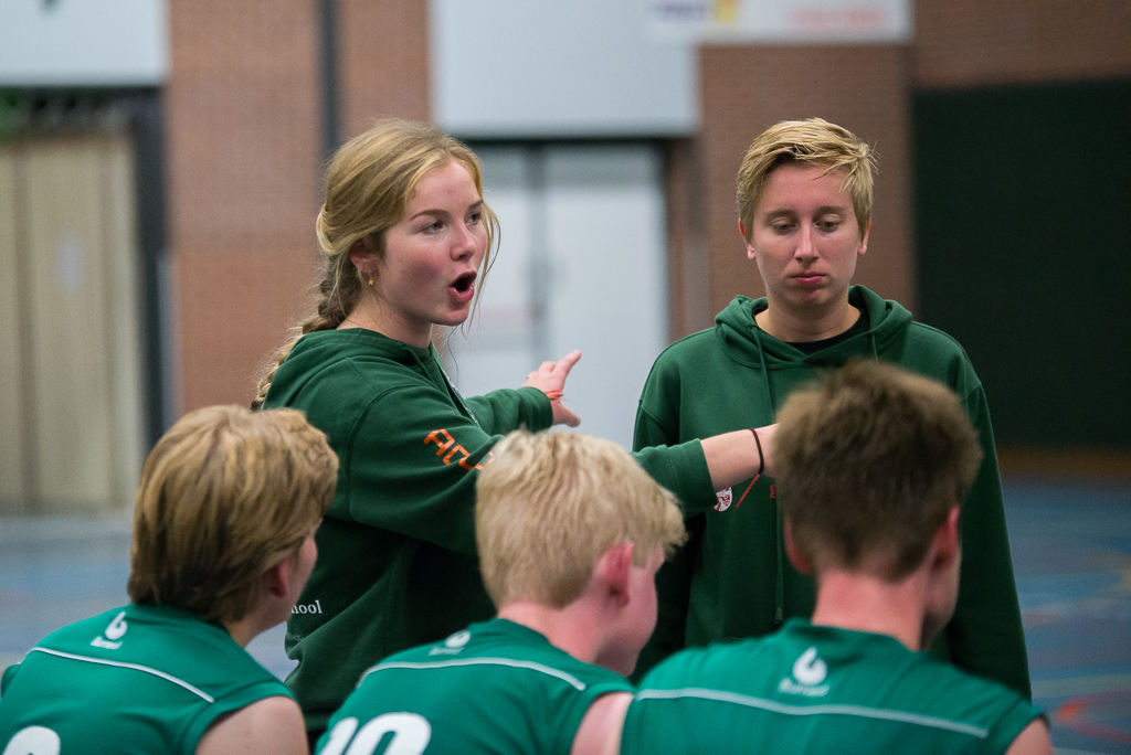 Om 12:30 begonnen vervolgens tegelijk de laatste twee wedstrijden van dit weekend voor Epeios. Op veld 1 mocht de MU14 haar eerste wedstrijdervaring opdoen. Coaches Rienk van der Werff en Victor Alting hadden acht spelers die gezamenlijk hun eerste wedstrijd gingen spelen. Tegenstander was het al langer competitie spelende Falcons MU14 dat al direct te sterk zou blijken. Ondanks dat de score-verhoudingen op het veld niet gelijk verdeeld waren beleefden Marco, Sven, Jeffery, Senne, Honey, Evelijn, Klaas-Jan en Bas een leuke wedstrijd. Het vele publiek moet wel trots zijn geweest! Verloren werd er wel met 24-79.
