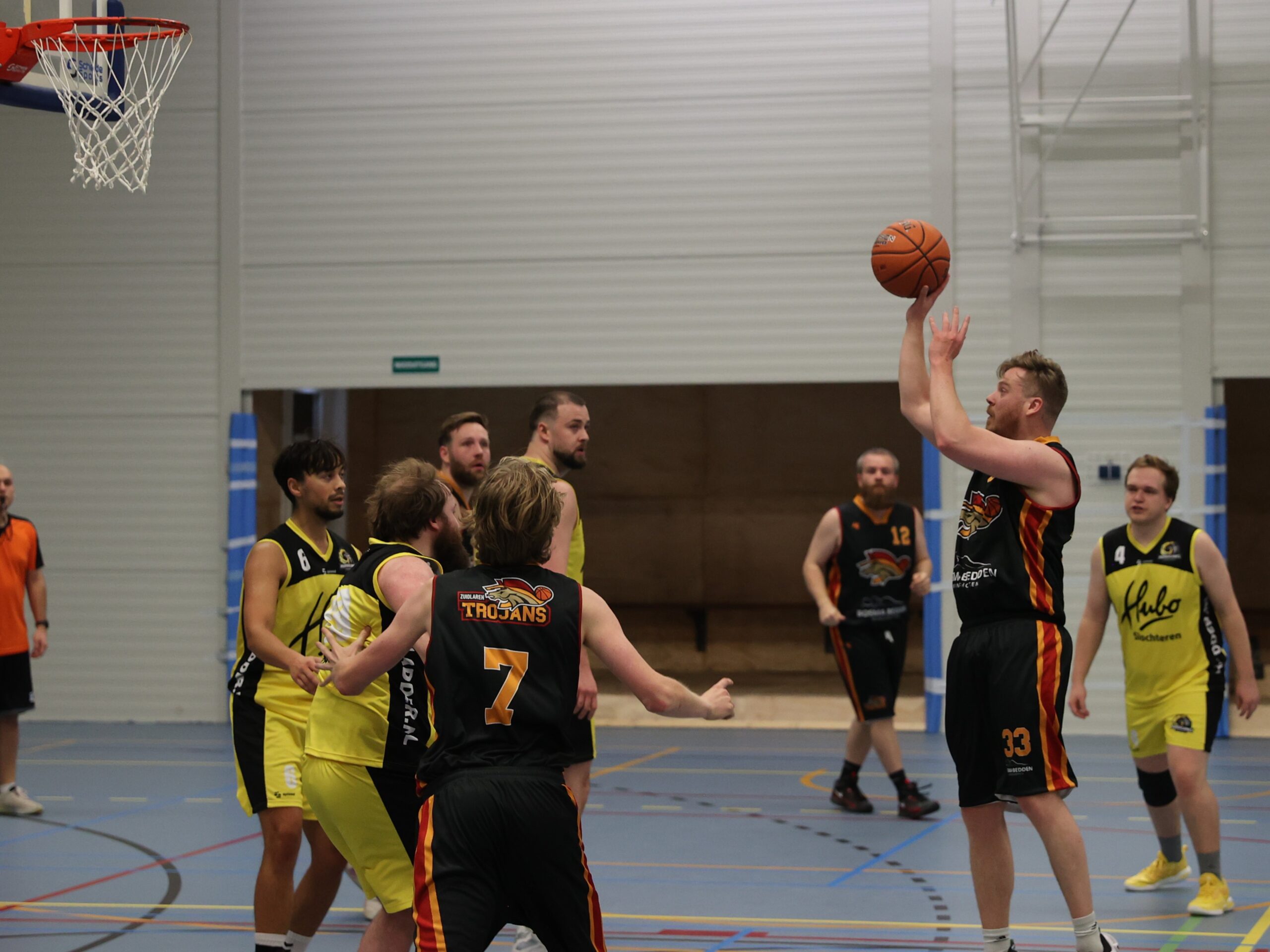 Namens de Zuidlaarders scoorden: E. Takens 15, M. Tadema 13, P. van Hoorn 13, S. Tissingh 12, A. Vossebelt 10, P. Spanjer 6, D. Palmer 5, T. van der Molen 5, P. Apol 2, M. Apol 2. Komende zaterdag spelen de Trojans uit tegen Moestasj uit Groningen.