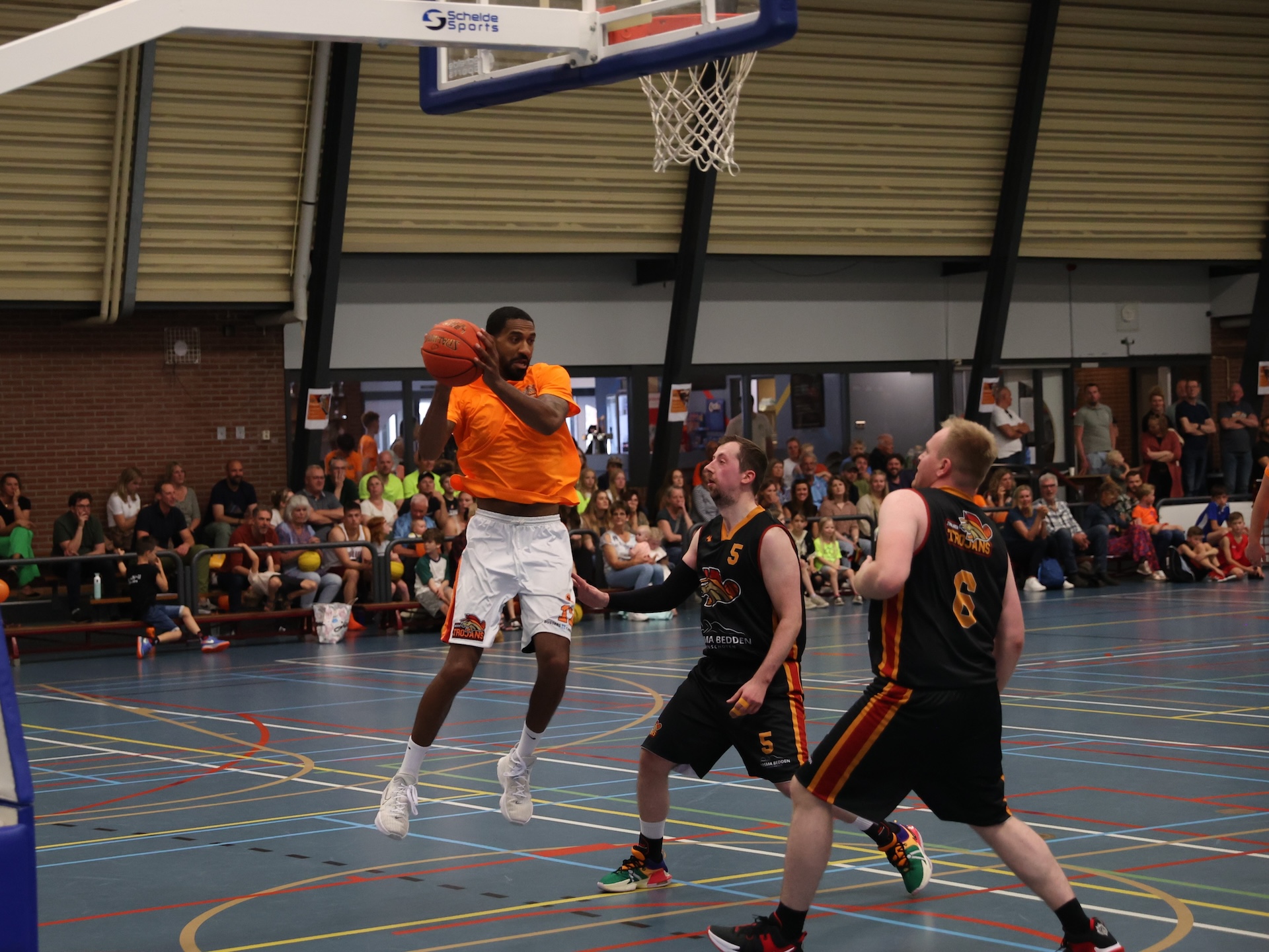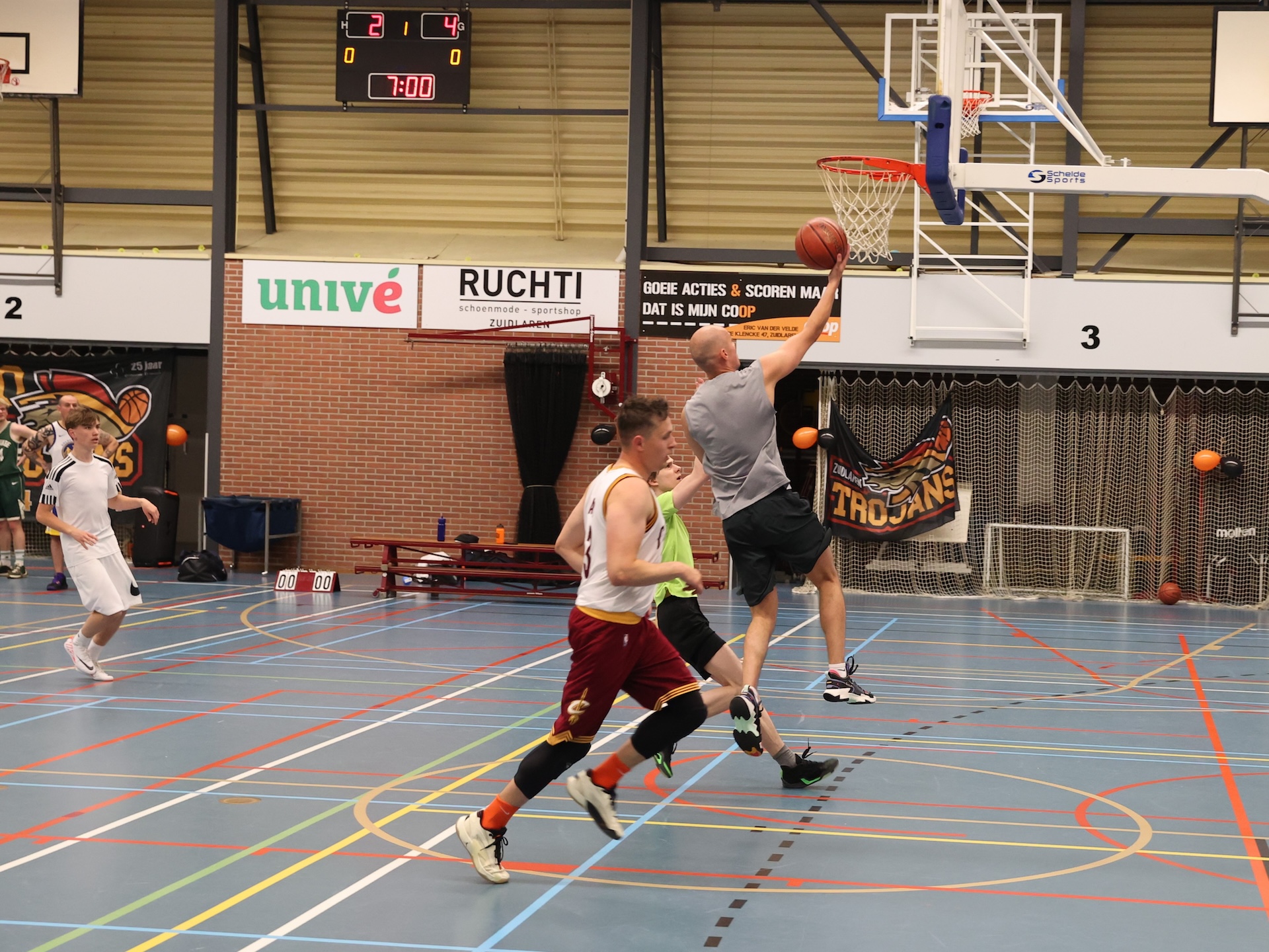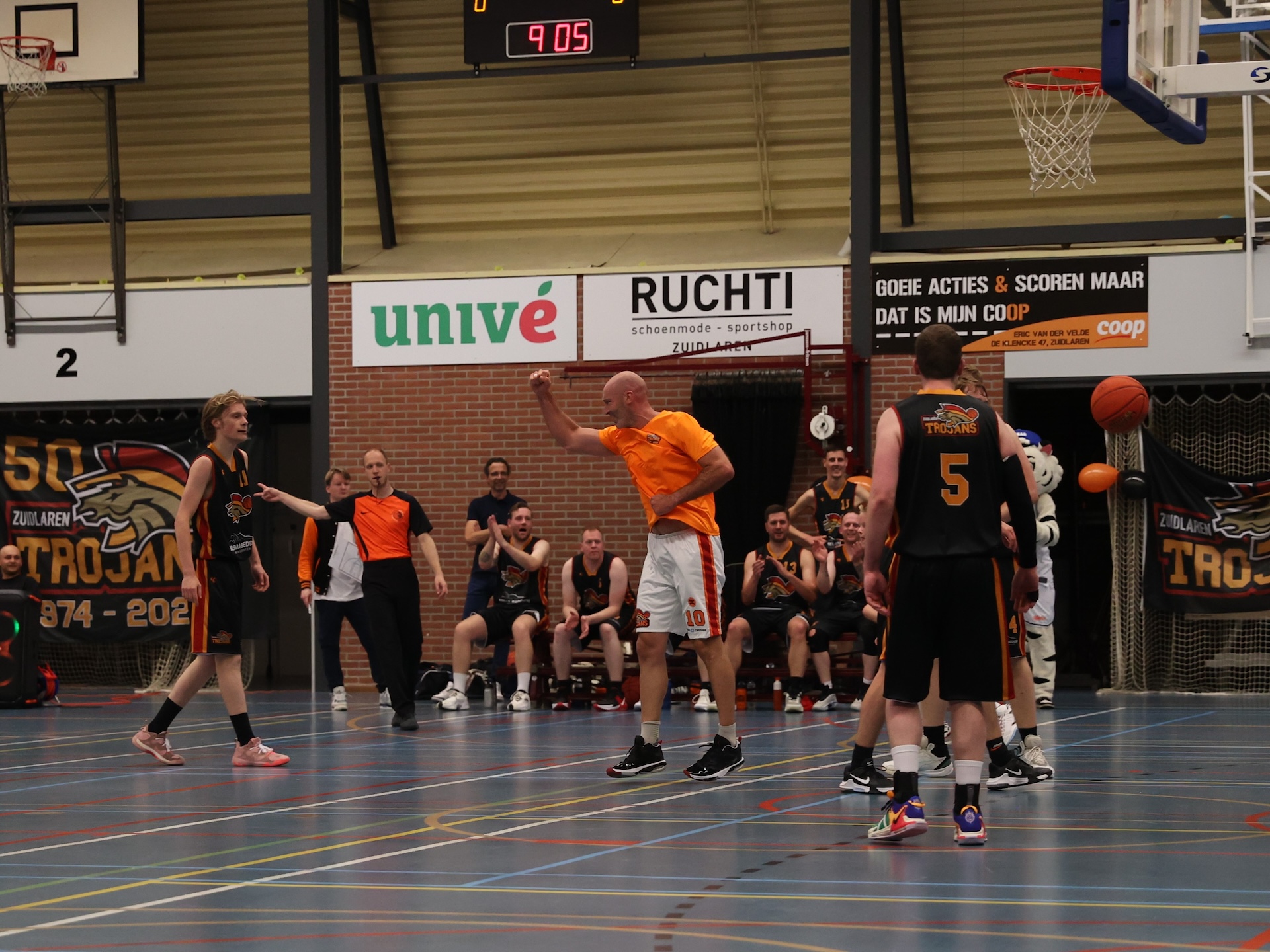 ZUIDLAREN – Basketballvereniging Zuidlaren Trojans vierde afgelopen zaterdag haar 50e verjaardag. Er werd onder meer een benefietwedstrijd gespeeld tegen professionals zoals Jason Dourisseau (ex-Donar) voor het goede doel.