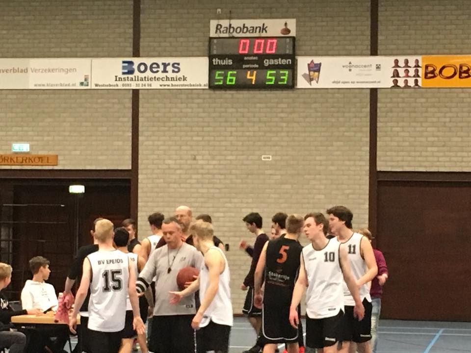 Epeios begon sterk in het eerste kwart, met een aantal rake afstandsschoten. De rest van de eerste helft ging het aardig gelijk op tussen de twee teams, wat zorgde voor een mooie ruststand van 23-26 in het voordeel van de Zuidlaarders.